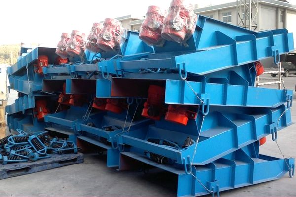 振動給料機(jī)可以把塊狀、顆粒狀物料從料倉中均勻、連續(xù)地喂料到受料裝置中;在砂石生產(chǎn)線中可以為破碎機(jī)連續(xù)均勻地喂料避免破碎機(jī)受料口堵塞;專為破碎篩分中粗破碎機(jī)前均勻輸送大塊物料設(shè)計。振動給料機(jī)采用雙偏心軸激振器的結(jié)構(gòu)特點,保證設(shè)備能承受大塊物料下落的沖擊,給料能力大。在生產(chǎn)流程中可以把塊狀、顆粒狀物料從貯料倉中均勻、定時、連續(xù)地給到受料裝置中去,從而防止受料裝置因進(jìn)料不均而產(chǎn)生死機(jī)的現(xiàn)象,延長了設(shè)備的使用壽命。給料機(jī)可分為鋼板結(jié)構(gòu)和篦條結(jié)構(gòu),鋼板結(jié)構(gòu)的給料機(jī)多用于砂石料生產(chǎn)線,將物料全部均勻地送入破碎設(shè)備;篦條結(jié)構(gòu)的給料機(jī)可對物料進(jìn)行粗篩分,使系統(tǒng)在配置上更經(jīng)濟(jì)合理,在破碎篩分中已作為必不可少的設(shè)備。