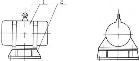 結(jié)構(gòu)如圖1所示。由振動電機(1)、底座(2)兩部分組成。振動電機和底座由螺栓緊密地固定為一體,由于底座堅固地安裝在料倉壁上,這樣就構(gòu)成了單質(zhì)點定向強迫振動系統(tǒng)。